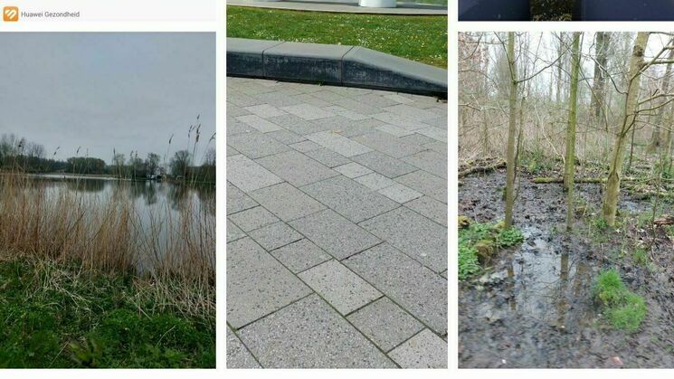 Volgens mij heb ik het gevonden....ik klim over een hek en loop naar een kudde grazende schapen. Nog even een extra check: Oh nee, dit is niet precies de route. Dus een stukje terug, en iets meer naar rechts een weiland in. Ik zie niet echt duidelijk of dit wel een officeel pad is, maar loop nu wel precies over de rode streep. Als ik iets verder vooruit kijk zie ik wel een 'kaler' stuk tussen bomen door, dus het zal inderdaad onderdeel van een pad zijn. Ik loop een stukje verder en merk nu goed dat het de afgelopen tijd flink geregend heeft. Ik loop dapper verder en ja hoor, natte schoenen en natte sokken ! Daar had ik niet echt op gerekend. Nou ja, ze zijn nu toch al nat, dus ik kan net zo goed verder lopen. Na nog wat echt natte stukken kom ik op een graspad langs de sloot. Dit loopt iets droger. De vreugde is van korte duur, want even verderop is geen gras, maar natte modder en blubber. Ik ben blij dat ik mijn schoenen goed stevig heb vastgeknoopt, want ze smakken flink in de modder, en de modderspetters vliegen omhoog bij elke stap. Het was niet alleen graspad, en modder, maar ook door een klein bos, dus weer goed opletten waar ik langs moest. Uiteindelijk kom ik weer op een verhard (fiets)pad en ga ik echt Leeuwarden weer in. Ik was trots op mezelf dat ik de eigenlijke route toch heb gevolgd.