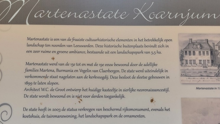 Ik zie voor mij nog een aantal wandelaars, maar omdat het nogal een bochtig en begroeid parcours is, verlies ik ze regelmatig uit het oog. Omdat ik ook niet zeker weet of alle afstanden hier nog dezelfde route volgen, kijk ik erg vaak om mijn mobiel en heb 'mijn locatie' aan, zodat ik zeker weet dat ik goed loop. Onderweg staat iemand van de organisatie en zet een aantal deelnemers op de foto. Hij geeft aan dat er straks een rustpuntje is (na ongeveer negen bochten) Bij de post krijgen we drinken en naar keus nog en paasei en/of een theebiscuitje. We gaan door het Leeuwarder bos richting Dekema state (Jelsum). Hier aangekomen, is de mogelijkheid voor een sanitaire stop en er is zelfbediening met koffie, thee en eventueel een koek of huisgemaakte appelplaatcake. Ook de betaling is op basis van goed vertrouwen: er is een pinautomaat (voorzien van uitleg) of voor contant geld een melkbus waar je geld in kan doen. Mooi dat dat zo kan.
