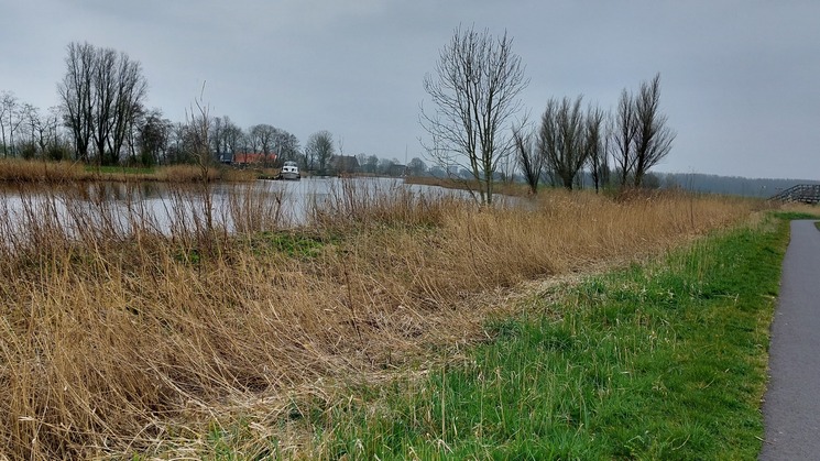 Ik ga een andere kant op en zie nu niemand meer voor me, maar ook niet achter me. Ik heb het idee dat ik de enige (nog) ben die de 30km wandelt. Gelukkig komt er na een paar kilometer een stel achterop die ik bij de start ook heb gezien. Zij halen mij in, en dat maakt dat ik weer een richtpunt heb. Ik kijk nog steeds regelmatig op mijn mobiel en zie wel dat het percentage stroom wel wat snel naar beneden gaat. Ik bedenk dat het waarschijnlijk ligt aan de app, in combinatie met 'mijn locatie'. Die functionaliteit gaat immers met gps, en dat kost extra stroom. Ik probeer de app wat minder te gebruiken, zeker als de route beperkt is tot één weg. Via Cornjum en Britsum gaan we met een slinger, langs de Dokkumer Ee, weer richting Leeuwarden.