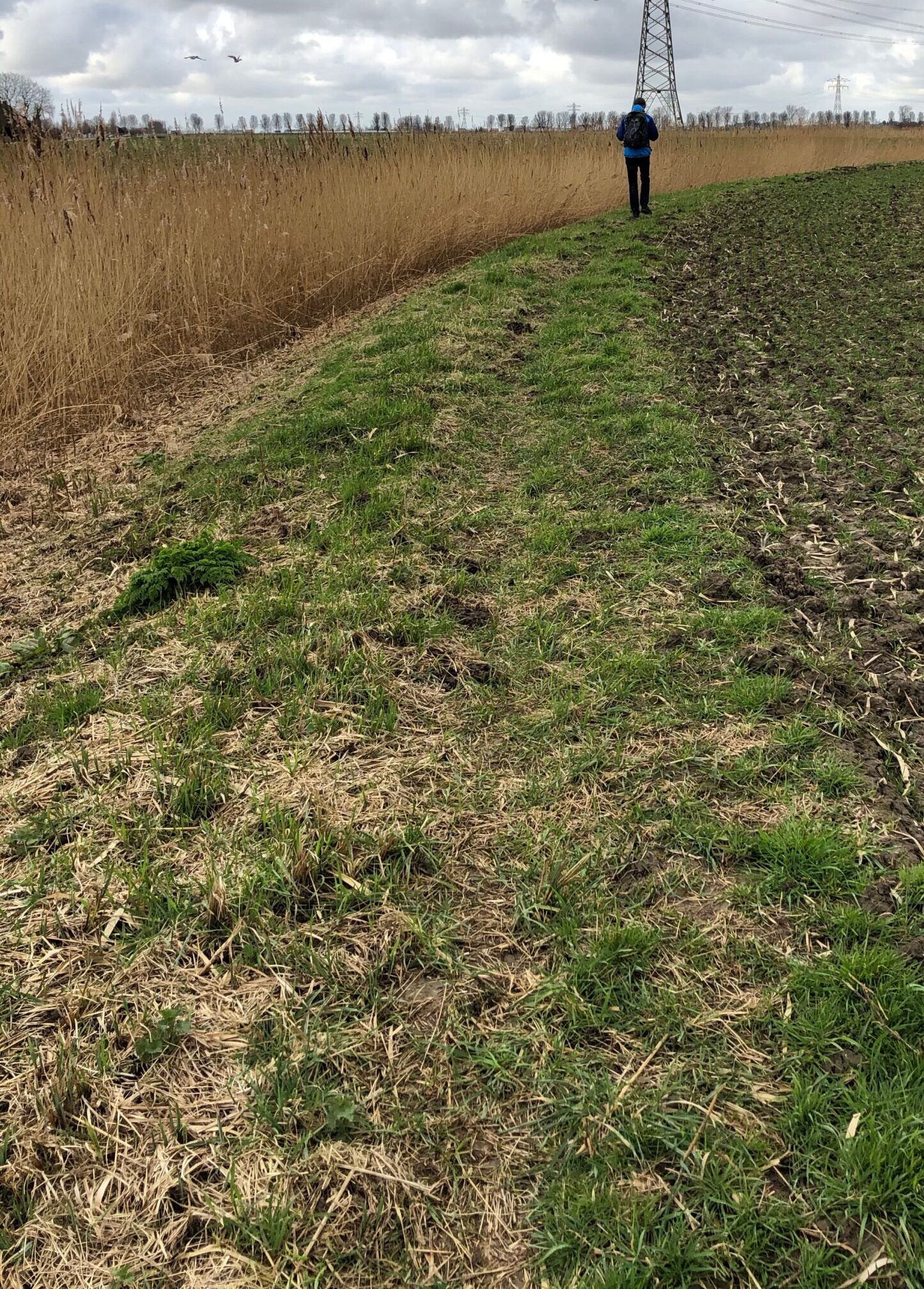 Er is wel een probleem bij het wandelen: Heijmert is 25 cm langer. Hij loopt met lange passen en ik loop er als een klein keffertje achteraan. Daardoor zet ik op een gemiddelde wandeltocht van 15 km zo’n slordige 2000 stappen meer dan hij. Mijn uitzicht ziet er vaak zo uit als op de foto.